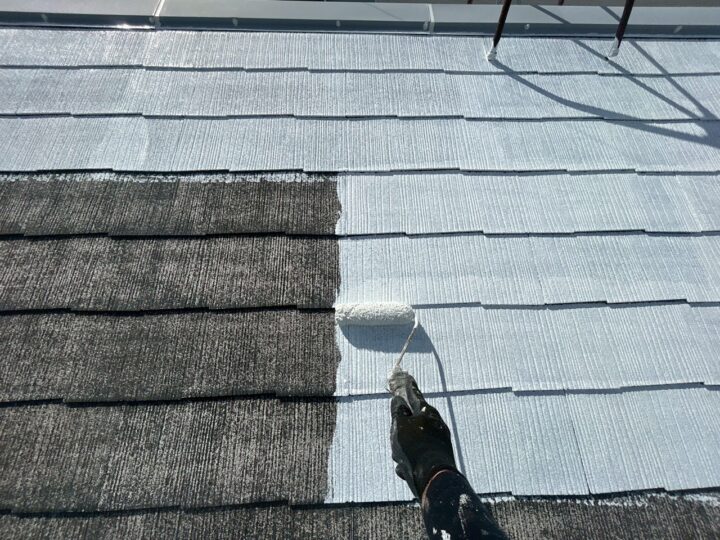 流山市K様邸ですが本日は、屋根の下塗り・縁切り部材取り付け工事を行いました🙋♂️ 屋根の下塗りを行います(SK化研・マイルドシ-ラ-EPOホワイト) 縁切り部材の取付を行います(タスペ-サ-01) 明日は屋根尾中塗りを行います❗