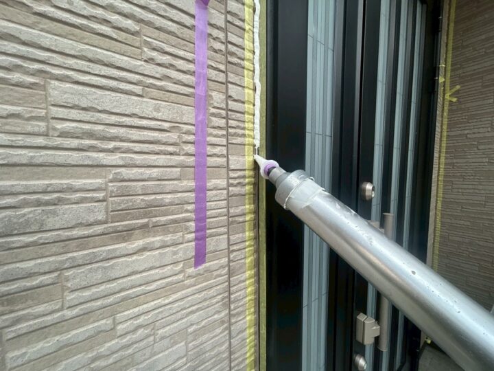 松戸市K様邸ですが本日は、開口部廻りのシーリングを行いました🙆♂️ 専用プライマーの塗布を行います シ-リング材を充填します 完了全景になります 明日は屋根の塗装を行います😀