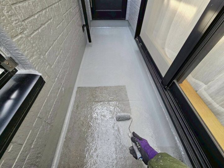 松戸市K様邸ですが本日は、ベランダ床の塗装を行いました🤩 下地処理のアセトン拭きを行います ベランダ床の下塗りを行います(東日本塗料・FRPプライマ-) ベランダ床の上塗りを行います(東日本塗料・弾性トップ14) 明日は点検を行います🧐