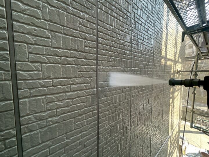 松戸市S様邸ですが本日は、高圧洗浄工事を行いました✌ 屋根の高圧洗浄工事を行います 雨樋内部は塗装できませんので高圧洗浄で洗い流します 外壁の高圧洗浄を行います 明日は各所下地処理を行います✨