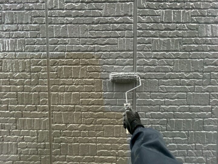 松戸市N様邸ですが本日は、外壁の上塗り工事をを行いました👩🌾 外壁の上塗りを行います 明日は各所付帯部塗装を行います🙋♂️