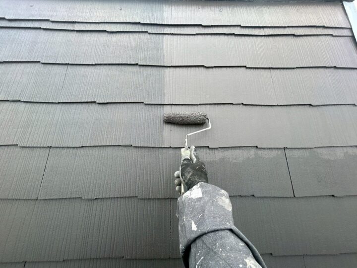 流山市T様邸ですが本日は、屋根塗装工事を行いました🙋♂️ 使用する材料ですが、水谷ペイント・ナノル-フ10になります。 屋根の下塗りを行います(水谷ペイント・水系パワ-シ-ラ-) 縁切り部材を取り付けます(タスペーサー01) 屋根の中塗りを行います(水谷ペイント・ナノル-フ10) 明日は屋根の上塗りを行います🌤