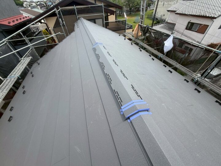 市川市O様邸ですが本日は、やねばんきん下地のルーフィング工事を行いました😉 棟板金等解体工事を行います ルーフィング工事を行います(タジマ・タディスセルフ) 明日は本体を施工します🎶