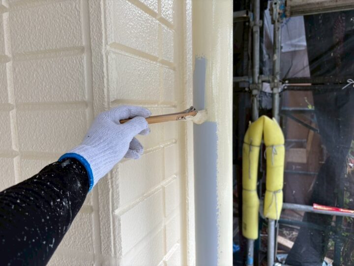 松戸市H様邸ですが本日は、外壁板間シ-リングを行いました✨ 旧シ-リング材の撤去を行います 専用プライマーの塗布を行います オ-ト科学工業のオ-トンイクシ-ドを充填します あすは開口部廻りシーリングを行います✌