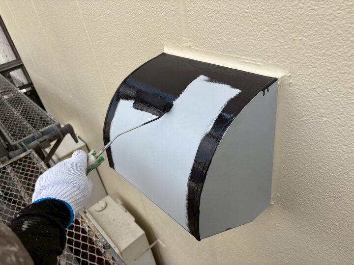 外壁塗装が完了しました松戸市K様邸ですが本日は、各所付帯部塗装を行いました😄 シャッターボックスに中塗りを行います(日本ペイント・ファインパ-フェクトトップ) 出窓上部の中塗りを行います(日本ペイント・ファインパ-フェクトトップ) 換気フ-ドの中塗りを行います(日本ペイント・ファインパ-フェクトトップ) 明日も引き続き、付帯部塗装を行います😙