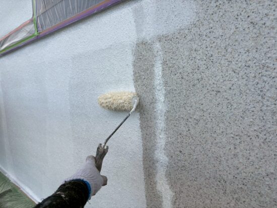 外壁の下塗りを行います(SK化研・パーフェクトフィラー)