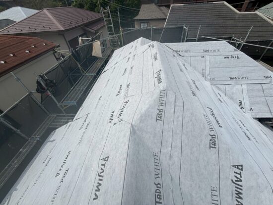 松戸市H様邸のアスファルトルーフィング貼り付け工事を行います🦾