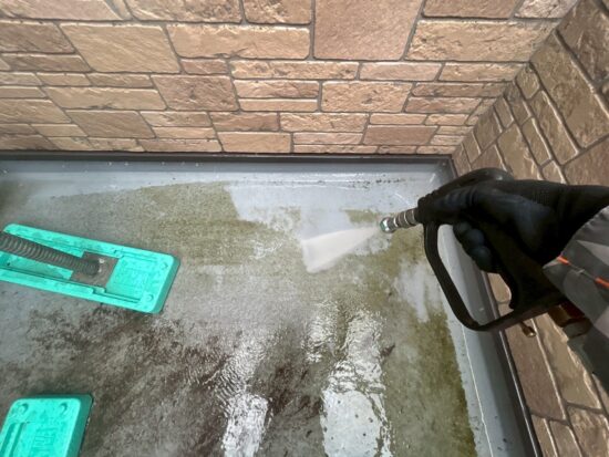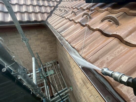 雨樋内部は塗装できませんので高圧洗浄で洗い流します