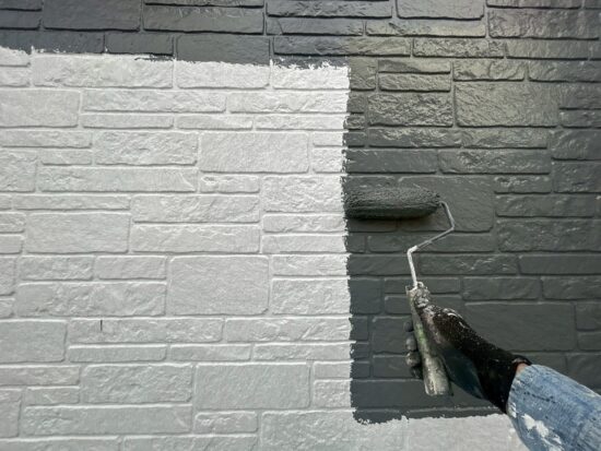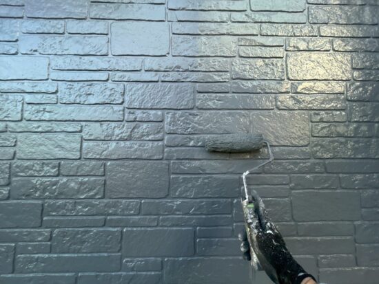 外壁の上塗りを行います(日本ペイント・パ-フェクトトップ)