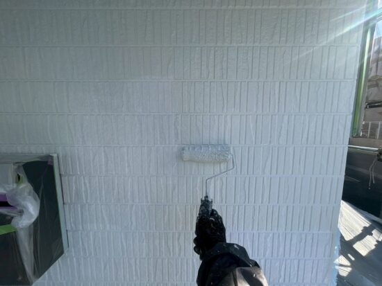 外壁の上塗り工事を行います(SK化研・エスケープレミアムシリコン)