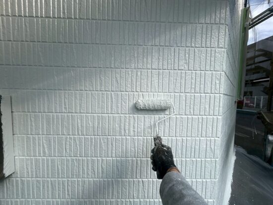 外壁の中塗りを行います(SK化研・エスケープレミアムシリコン)