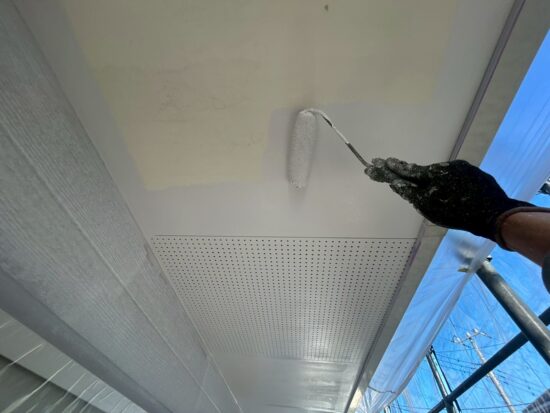 軒天の下塗りを行います(日本ペイント・水性ケンエ-ス)
