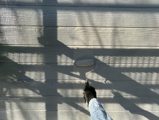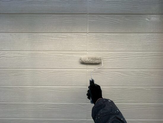 アクセント外壁の上塗りを行います(日本ペイント・パ-フェクトトップSI)