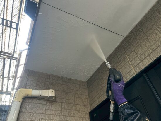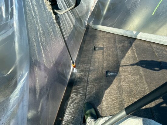 雨樋内部は塗装できませんので高圧洗浄で洗い流します