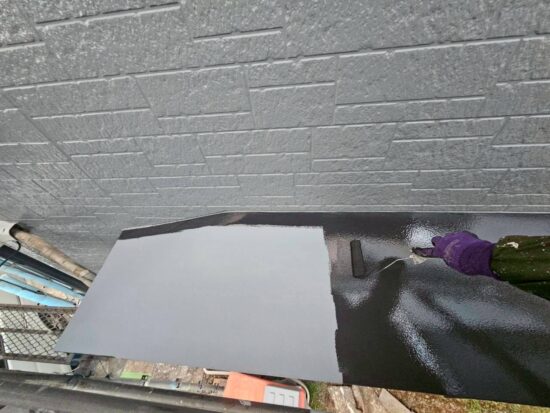 霧除けの中塗りを行います(日本ペイント・ファインパ-フェクトトップ)