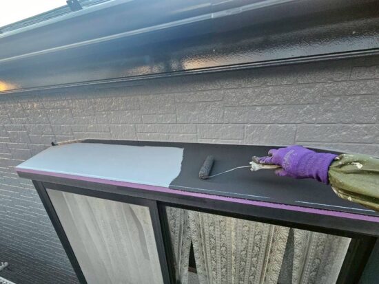 出窓上部の中塗りを行います(日本ペイント・ファインパ-フェクトトップ)