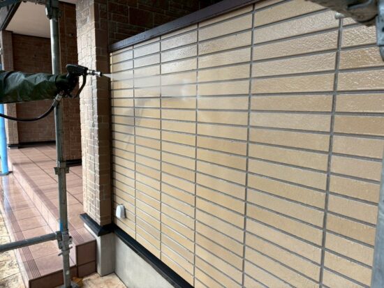 アクセント外壁の高圧洗浄を行います