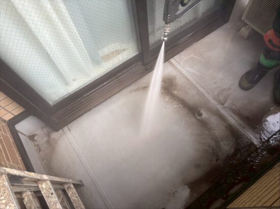 ベランダ床の高圧洗浄を行います