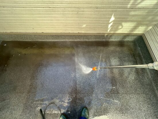 雨樋内部は塗装できませんので高圧洗浄で洗い流します