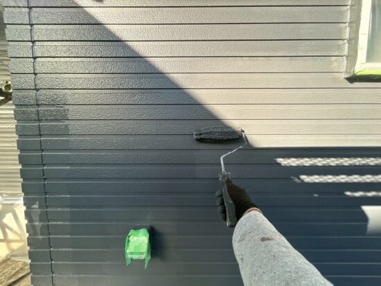 アクセント外壁の上塗りを行います(SK化研・エスケープレミアム無機)