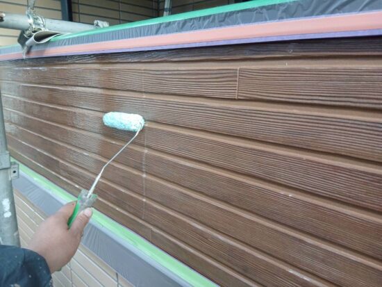アクセント外壁クリアー塗装1回目になります