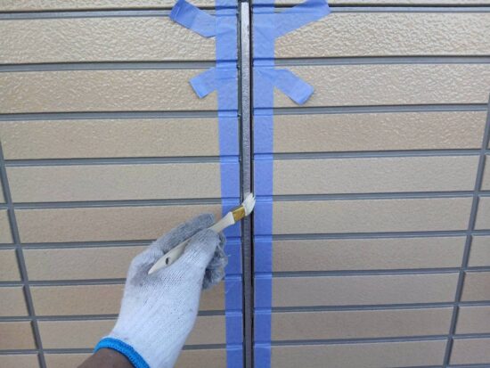 旧シ-リング材の撤去は完了してますので専用プライマ-の塗布を行います