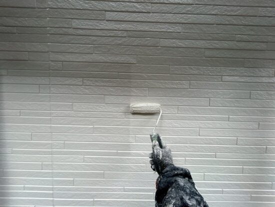 外壁の上塗りを行います
