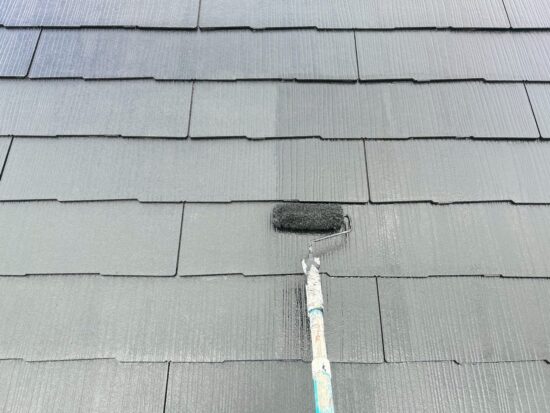 屋根の中塗りを行います(SK化研・エスケ-プレミアム無機ルーフ)