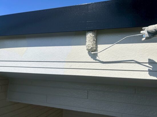 破風板の中塗りを行います(日本ペイント・ファインパ-フェクトトップ)