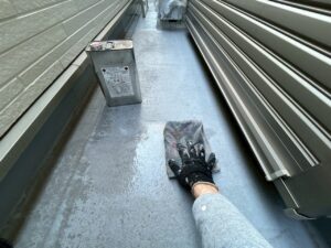 ベランダ床の下塗りを行います(東日本塗料・FRPプライマ-)