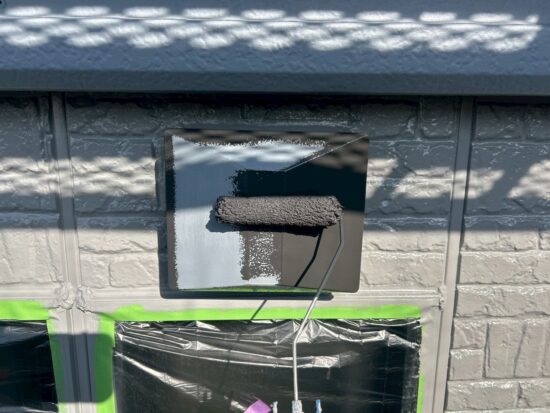 庇の中塗りを行います(日本ペイント・ファインパ-フェクトトップ)
