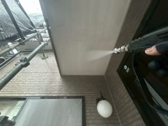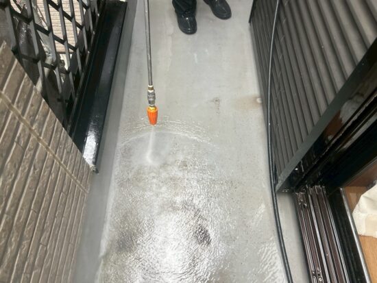 ベランダ床の高圧洗浄を行います