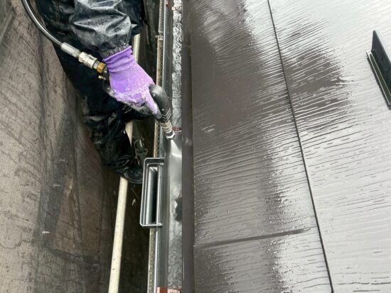 雨樋内部は塗装できませんので高圧洗浄で洗い流します