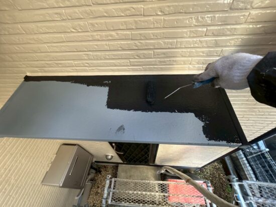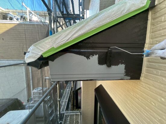 霧除けの中塗りを行います(日本ペイント・ファインパ-フェクトトップ)