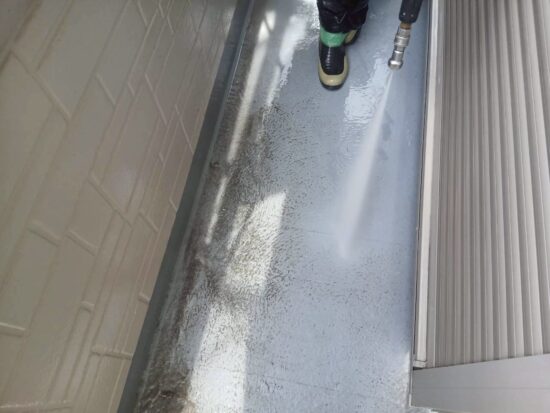 ベランダ床の高圧洗浄を行います
