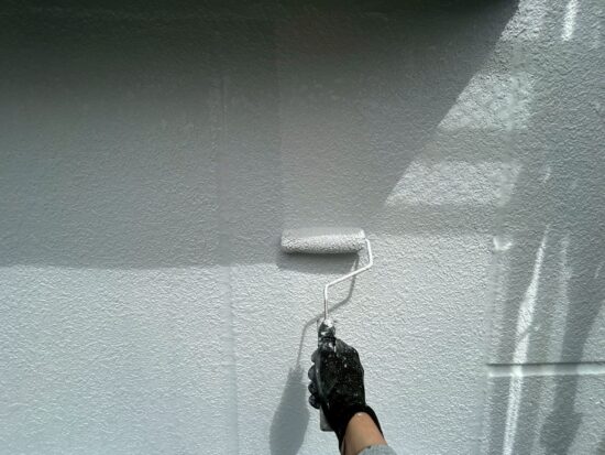外壁の上塗りを行います(日本ペイント・パ-フェクトトップ)