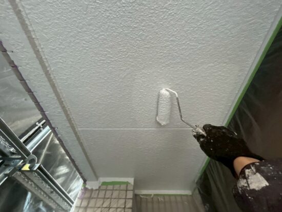 軒天の上塗りを行います(日本ペイント・パ-フェクトトップ)