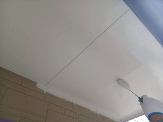 軒天塗装1回目になります(日本ペイント・パ-フェクトトゥルーマット)