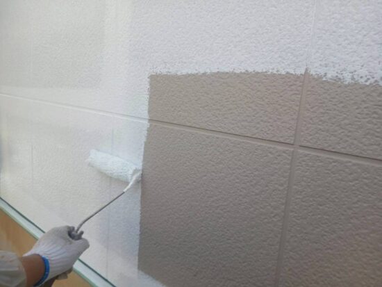 メイン外壁・アクセント外壁の下塗りを行います(日本ペイント・パ-フェクトサーフ)
