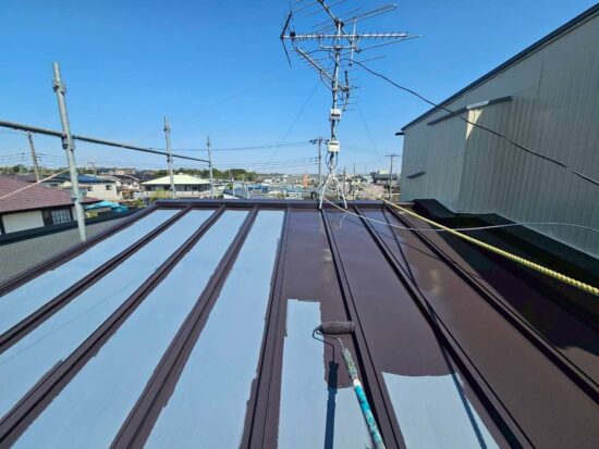 屋根の中塗りを行います(日本ペイント・ファインパ-フェクトベスト)