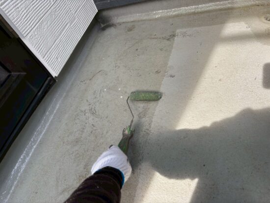 ベランダ床下塗りを行います(東日本塗料・FRPプライマ-)