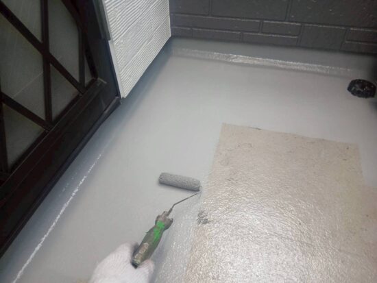 ベランダ床の上塗りを行います(東日本塗料・弾性トップ14)