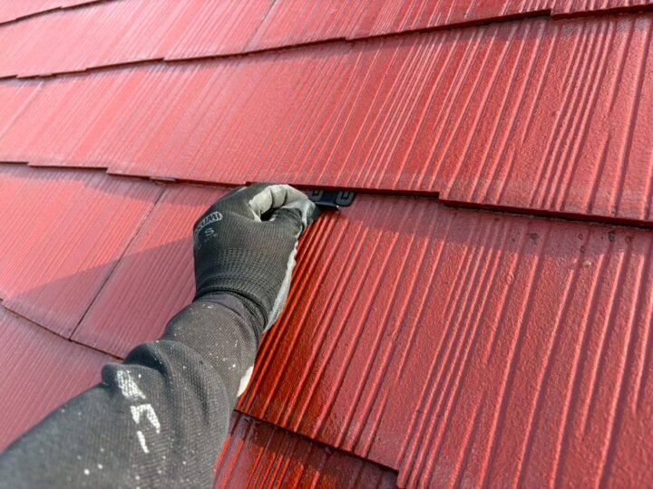 流山市T様邸ですが本日は、屋根の下塗り・縁切り部材取り付け工事を行いました❗ 屋根の下塗りを行います(SK化研・マイルドシ-ラ-EPO) 縁切り部材の取り付けを行います 明日は屋根の中塗り・上塗りを行います👌