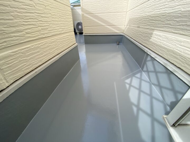 柏市H様邸ですが本日は、ベランダ床の下塗り・上塗り工事を行いました。 ベランダ床の下塗りを行います(東日本塗料・フロ-ンプライマ-US) ベランダ床の上塗りを行います(東日本塗料・弾性トップ14) 完了全景になります とても綺麗に仕上がりH様にもご満足いただけました‼
