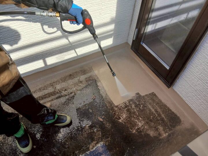 流山市T様邸ですが本日は、外壁高圧洗浄工事を行いました🧐 外壁の高圧洗浄を行います 軒天の高圧洗浄を行います ベランダ床の高圧洗浄を行います 明日は各所下地処理を行います😄