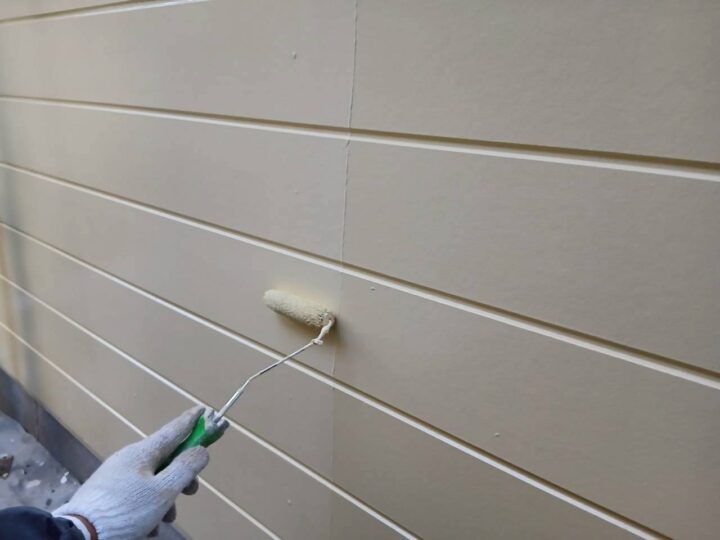 柏市O様邸ですが本日は、外壁の中塗り・上塗り工事を行いました🙋♂️ 外壁の中塗りを行います(SK化研・エスケープレミアムシリコン) 外壁の上塗り工事を行います(SK化研・エスケープレミアムシリコン) 外壁の塗装が完了しました✨明日は付帯部の塗装を行います✌